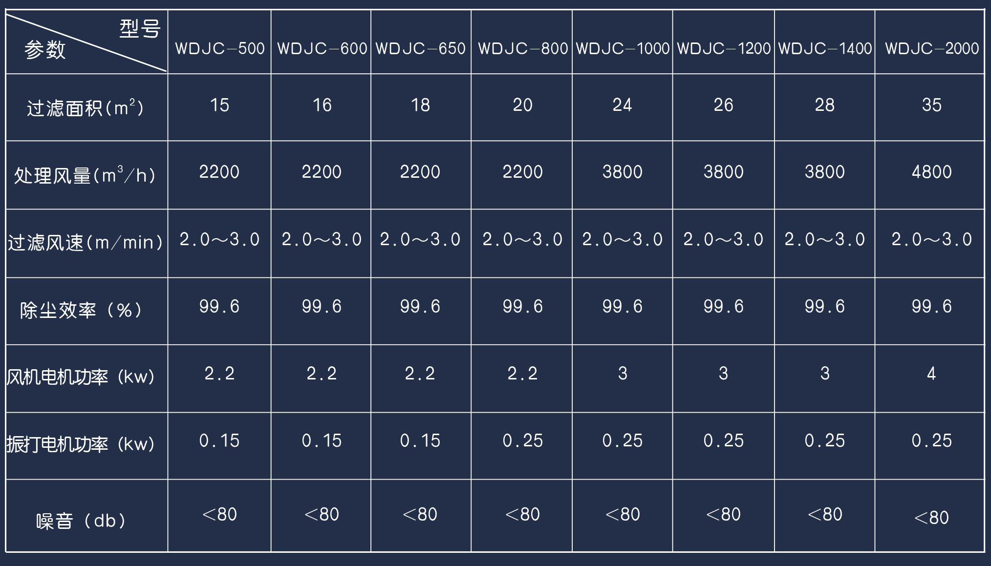 WDJC型除塵器性能參數(shù)表